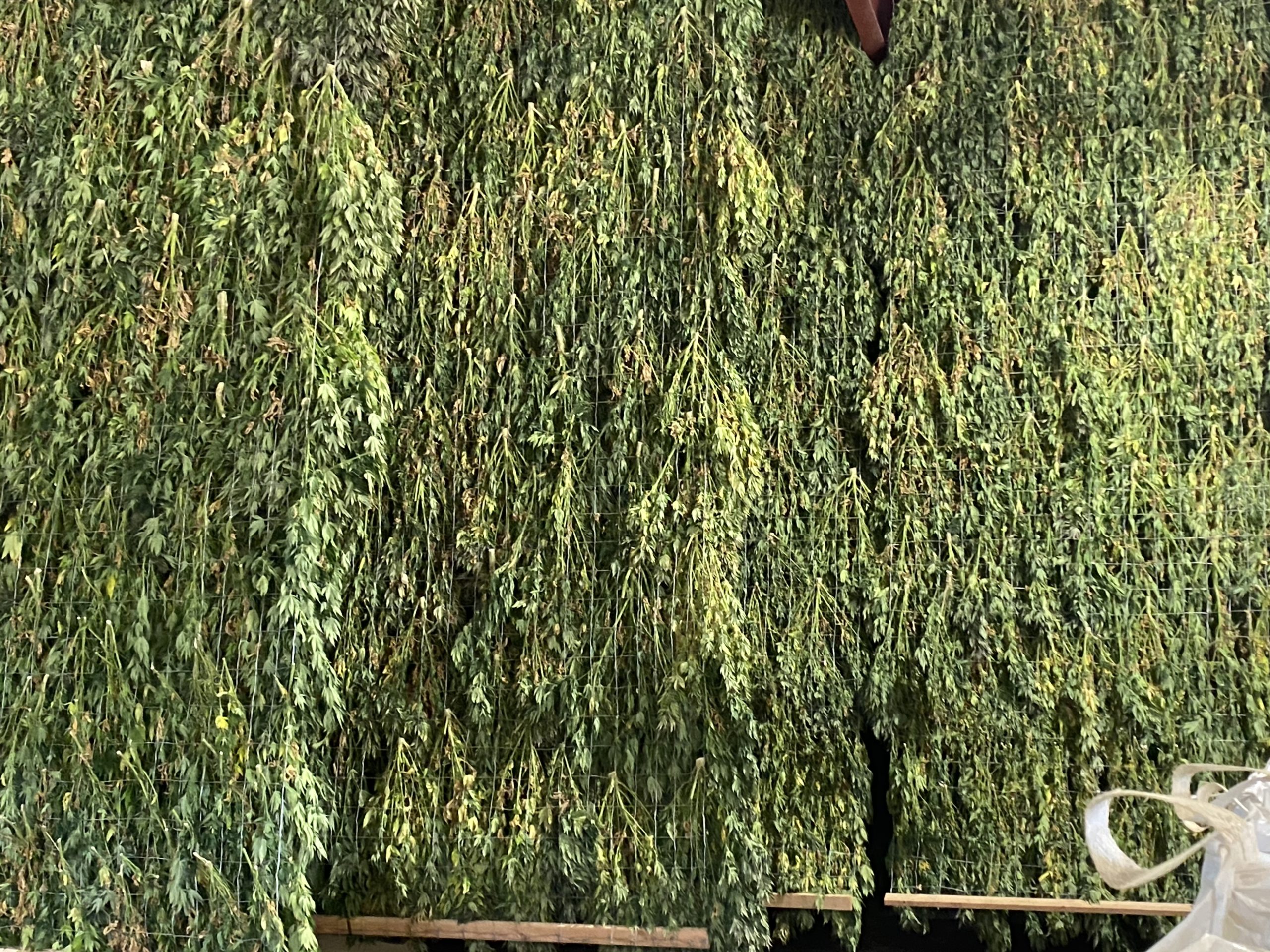 There are more than ten thousand pounds worth of hemp in our 2020 harvest and they are all delicately processed by hand. The harvested hemp is placed in our large warehouse where it dries. It will then be processed at a separate facility where oils are extracted for use in our top-of-the-line products.